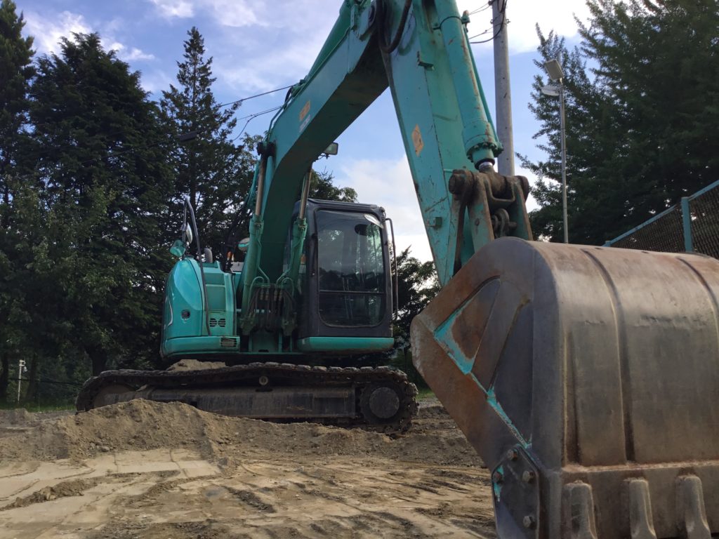 校庭で頑張っている『はたらく車』近くで見るとやっぱり大きいですね。車も職人さんもいつもお疲れ様です。