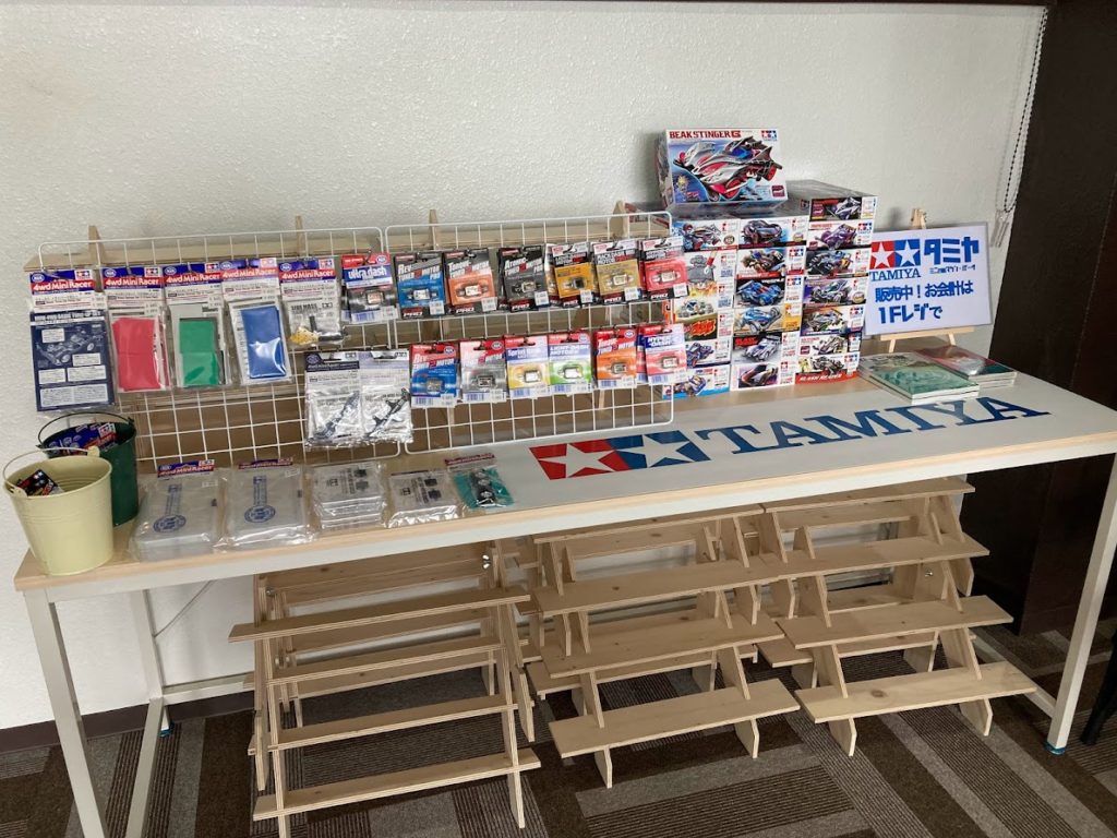 プロ中のプロ、ビックカメラ(コジマ)本部の田中さんが設計したコースは、複合的要素が求められ「セッティングがとても重要」利用者の方から、車体本体の他、モーター、ブレーキや電池など消耗品も置いて欲しいと要望を受け、地元小野町のこまち書房の店長さんと相談しフルセット準備させて頂きました!ぜひご利用ください。ミニ四駆を走らせながらコーヒーや軽食もご利用頂けます。